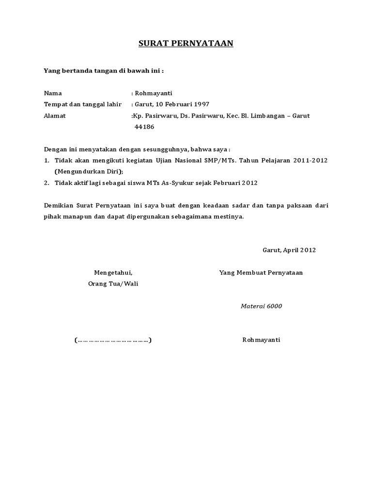 Surat Pernyataan Mengundurkan Diri Pdf